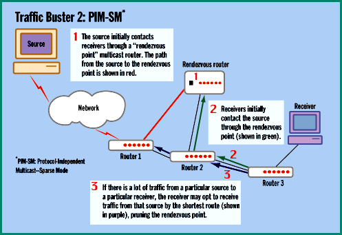 As estações interessadas em receber os pacotes do grupo devem-se registrar nos rendezvous points. O tráfego é enviado para esse ponto, que irá encaminhá-lo para os receptores registrados.